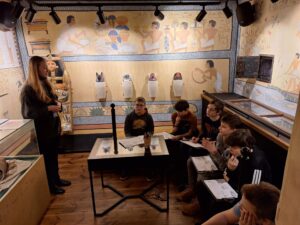 Vana-Egiptuse stiilis maalitud hauakambris tutvuti muistsete egiptlaste matusekultuuri, jumalate ja uskumustega hauatagusest elust. Uuriti mumifitseerimise protsessi ja ehtsaid muumiaid ning seinamaalingute tähendusi.