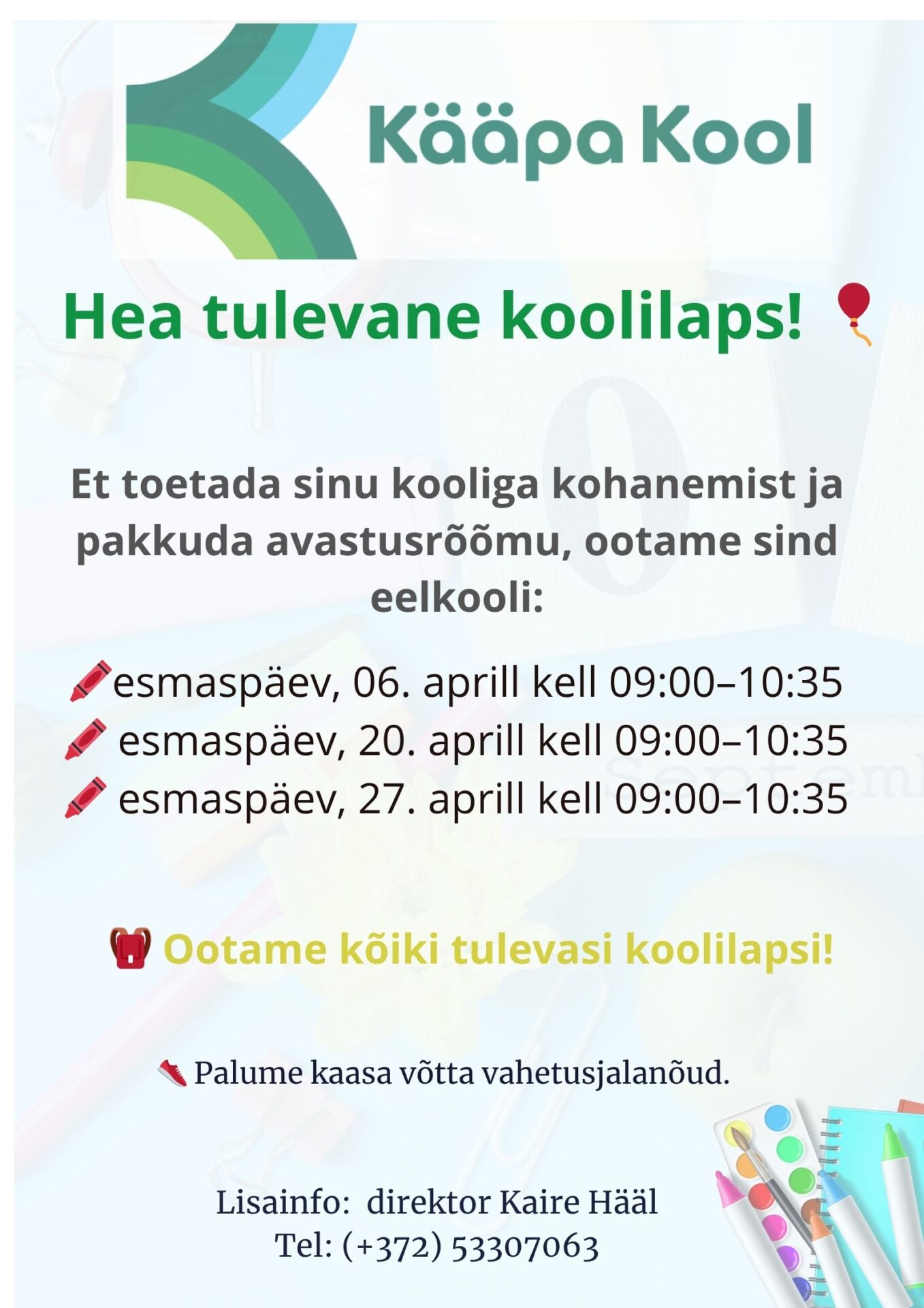 Ootame kõiki tulevasi koolilapsi!