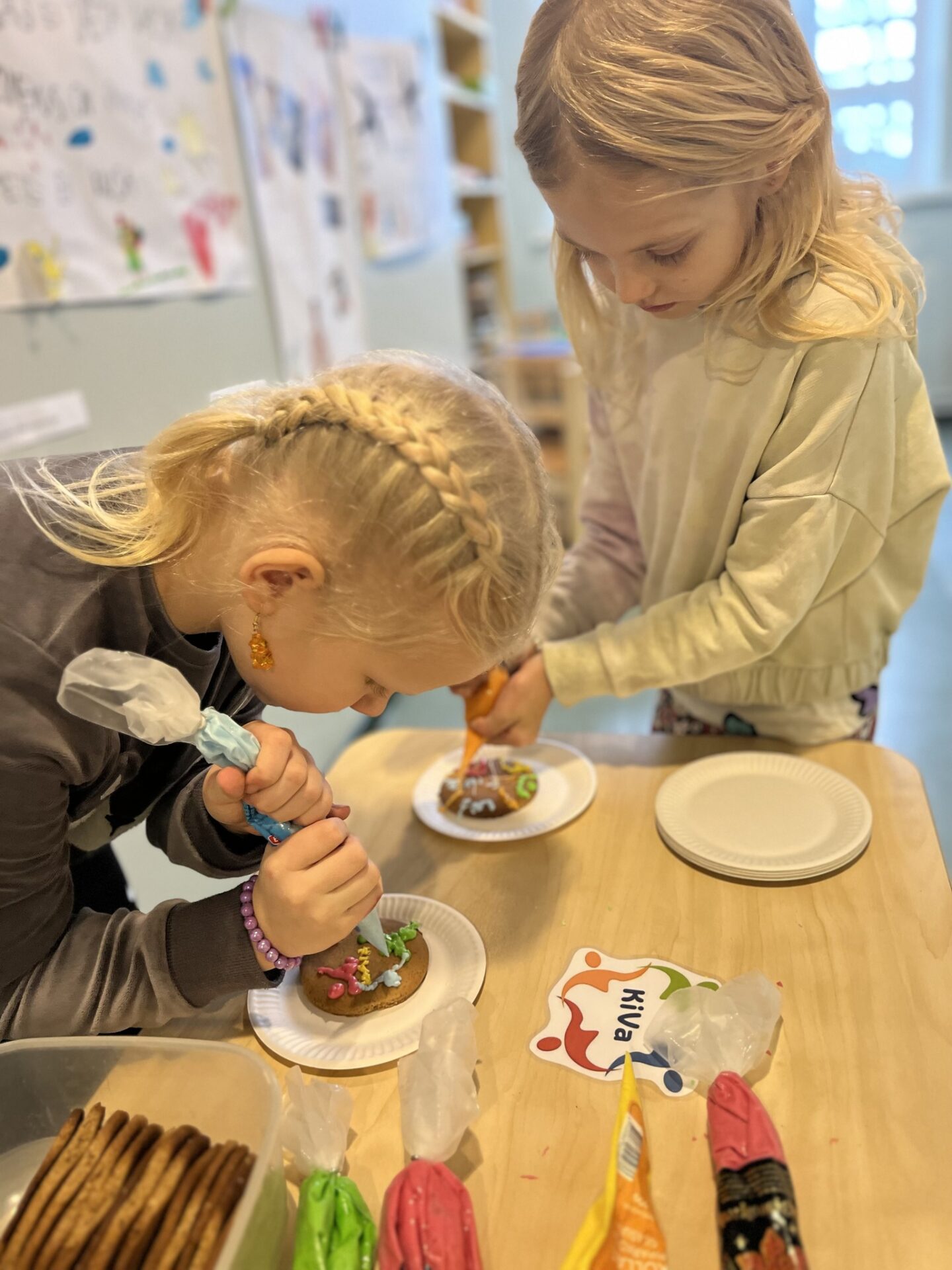 Väike meenutus 9. detsembri jõululaadast, kus Kääpa Kooli KiVa tiim ootas kõiki piparkoogi kaunistamise huvilisi oma kätt proovima, kuidas glasuuridega ümmargusele piparkoogile KiVa logo maalida. Ülesanne nõudis parajalt pingutust ja aega, aga oli see-eest õige magus. Palegi valmis korralik ports kauneid värvilisi KiVa piprakooke!