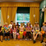 Naljapäeva üks mängudest: noorematel õpilastel: pimedast peast tuli panna kokku tükkidest kass. Esimese klassi rühm oma “kassi” imetlemas.