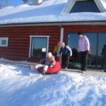 Mäelt koolimajja minnes tegid lapsed lumeliblikaid.
