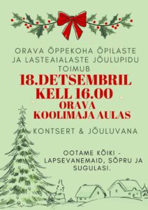 Orava õppekoha jõulupidu toimub neljapäev, 18. dets kell 16.