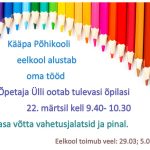 Eelkool toimub veel: 29.03; 5.04; 12.04