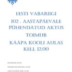 Reedel 21.02 hommikul toimub õppetöö ja kell 12 algab pidulik Vabariigi aastapäeva aktus.