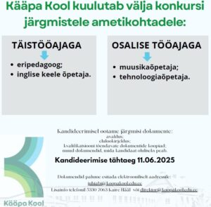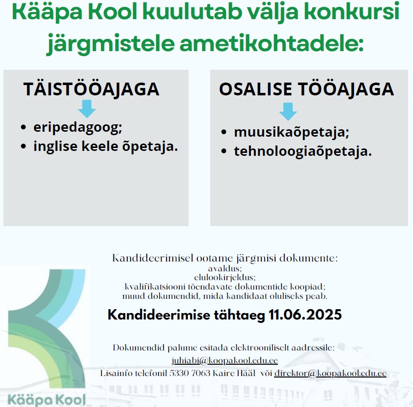Kääpa Koolkuulutab väljakonkursi järgmistele ametikohtadele: