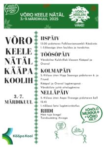Võro keele nätäl Kääpä koolin om 3.-7.märdikuul. Kõnõlami võro kiilt ja õgal pääväl tetäs midägi põnõvat.