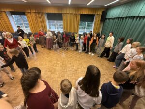 Iispäävä tull kuuli folkluuriandsambli Käokiräs, 1.-5.klassi latsiga laulti ja tandsiti.